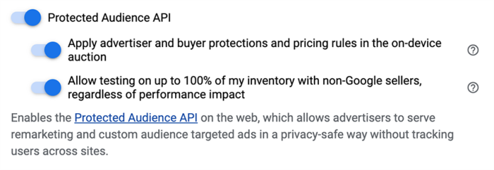 これらの設定の詳細は、GoogleのProtected Audience API and Ad Managerをご確認ください。